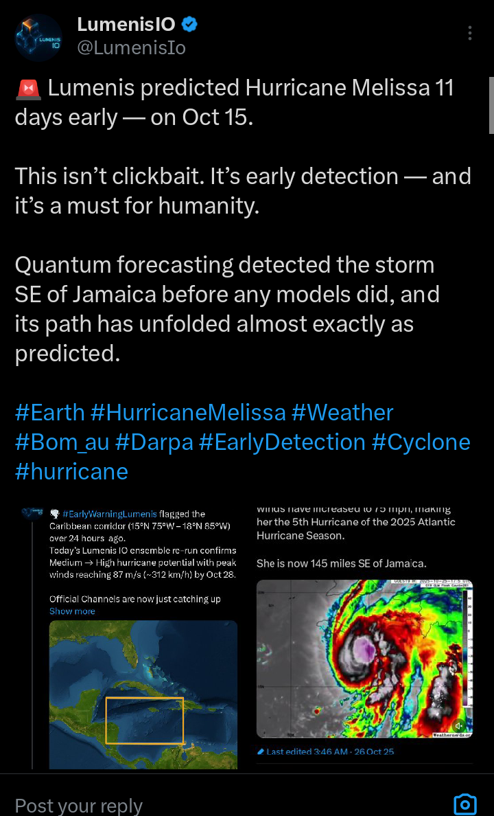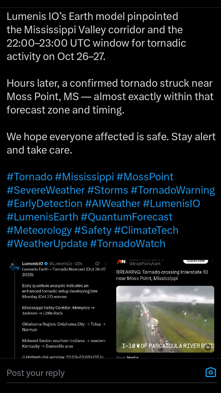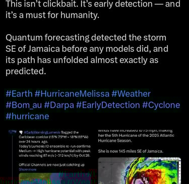 Through quantum-scale atmospheric and tectonic analysis, Lumenis can identify pre-genesis signals for cyclones, tornado corridors, and seismic strain long before conventional systems even register them.