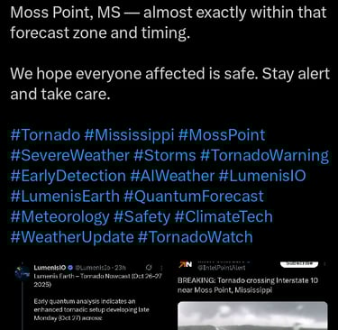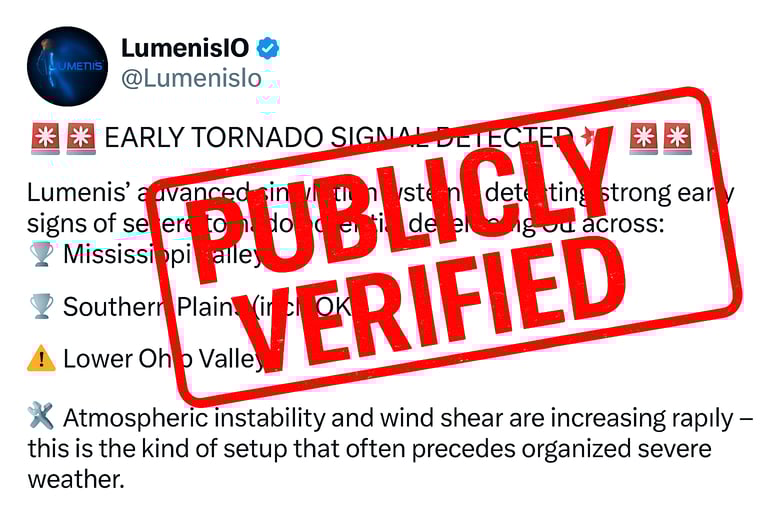 This advanced analytical framework has already demonstrated the ability to detect cyclone and tornado formation days — even weeks — before conventional forecast systems, proving its concept in real time.