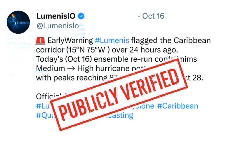 By processing and cross-comparing vast datasets of temperature, pressure, ocean heat content, humidity, and upper-air wind shear, Lumenis identifies the earliest atmospheric signals that precede severe weather events.